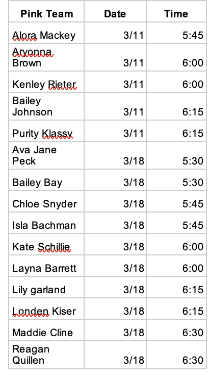 Below, I have a detailed schedule for the upcoming weeks! Please view below and email me with any further questions!