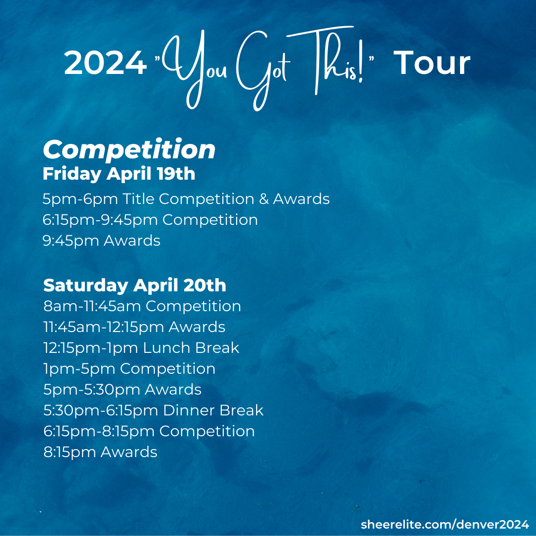 Attached is the sheer elite schedule. Also attached is the convention schedule and detailed info for the weekend. Let me know if you have any questions .